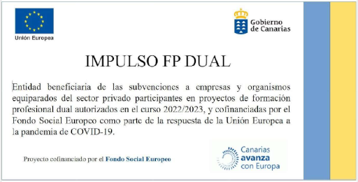 Entidad beneficiaria de las subvenciones a empresas y organismos equiparados del sector privado participante en operaciones cofinanciadas por medio del Fondo Social Europeo Plus dentro del Programa FSE+ 2021-2027 Comunidad Autónoma de Canarias pertenecientes a la actuación Apoyo a la Dual en su fase formativa fuera del centro educativo.